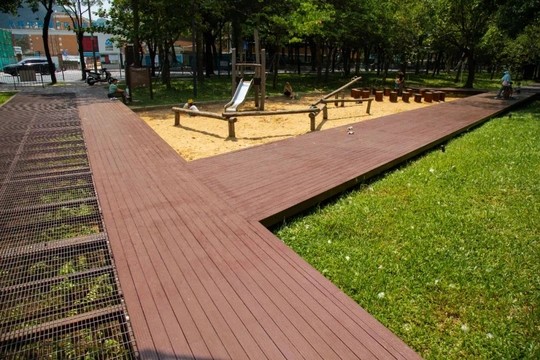园林塑木地板则聚焦公共园林场景,立美这款产品具备高强度的承重性能与耐磨性,能承受大量行人的踩踏与小型景观设施的架设。其色彩与纹理可根据园林设计风格定制,与周边的亭台、水景等景观协调统一,提升园林的整体美感,在公园、景区等场所得到广泛应用。